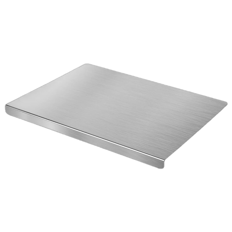 The durable 0.15cm thick steel surface can handle intense chopping, slicing, dicing, and even rolling out pastry without warping.